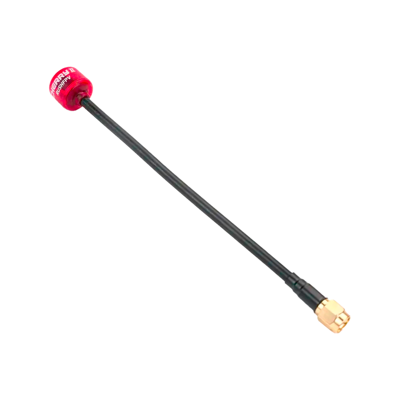 Антена Rush FPV Cherry виготовлена компактною та міцною, з гнучкою трубкою, яка витримує удари та кутові вигини, щоб запобігти пошкодженню кабелю. Використовується тонкий тефлоновий коаксіальний кабель з подвійним екрануванням та посрібленою житловою, що відрізняється м'якістю, гнучкістю та низькими втратами сигналу. Крім того, він має VSWR нижче 1,2 у діапазоні 5600-6000 МГц, що забезпечує ефективність передачі до 98% та зменшує нагрівання VTX.